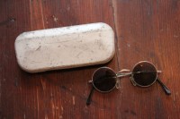 Ein vollkommen zerkratztes Brillenetui und eine John-Lennon-Gedächtnisbrille.